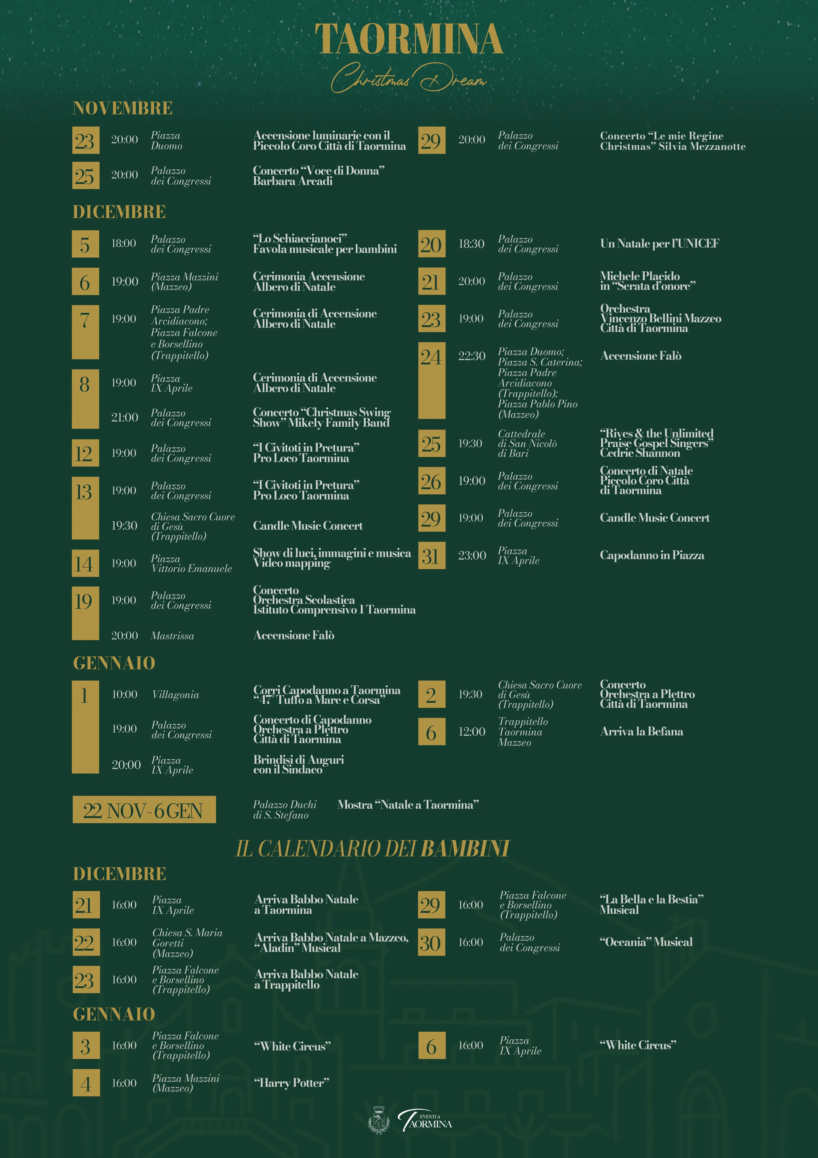 December 19 – Christmas Concert by the students of the Taormina Schools – Congress Hall @ 7:00pm