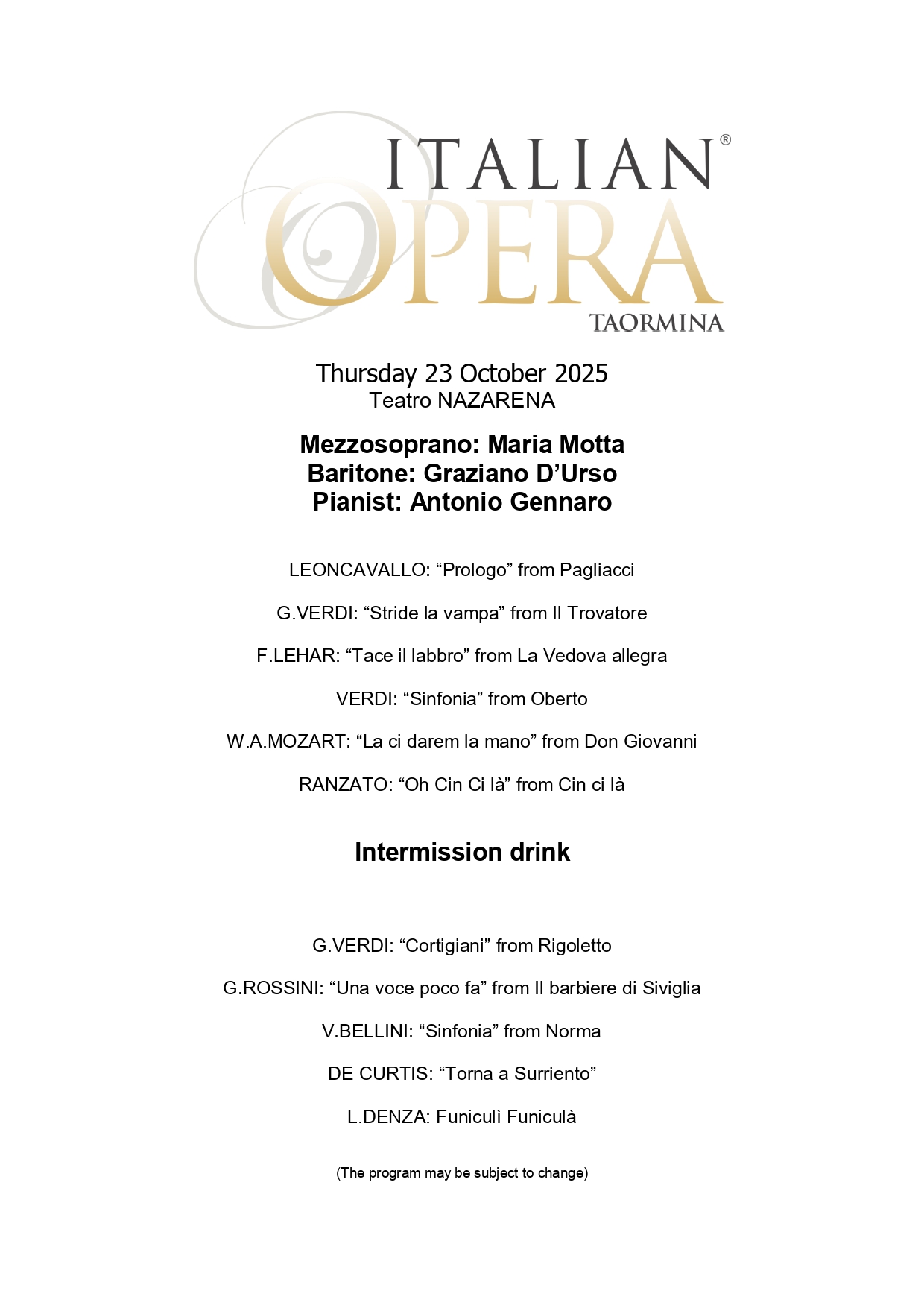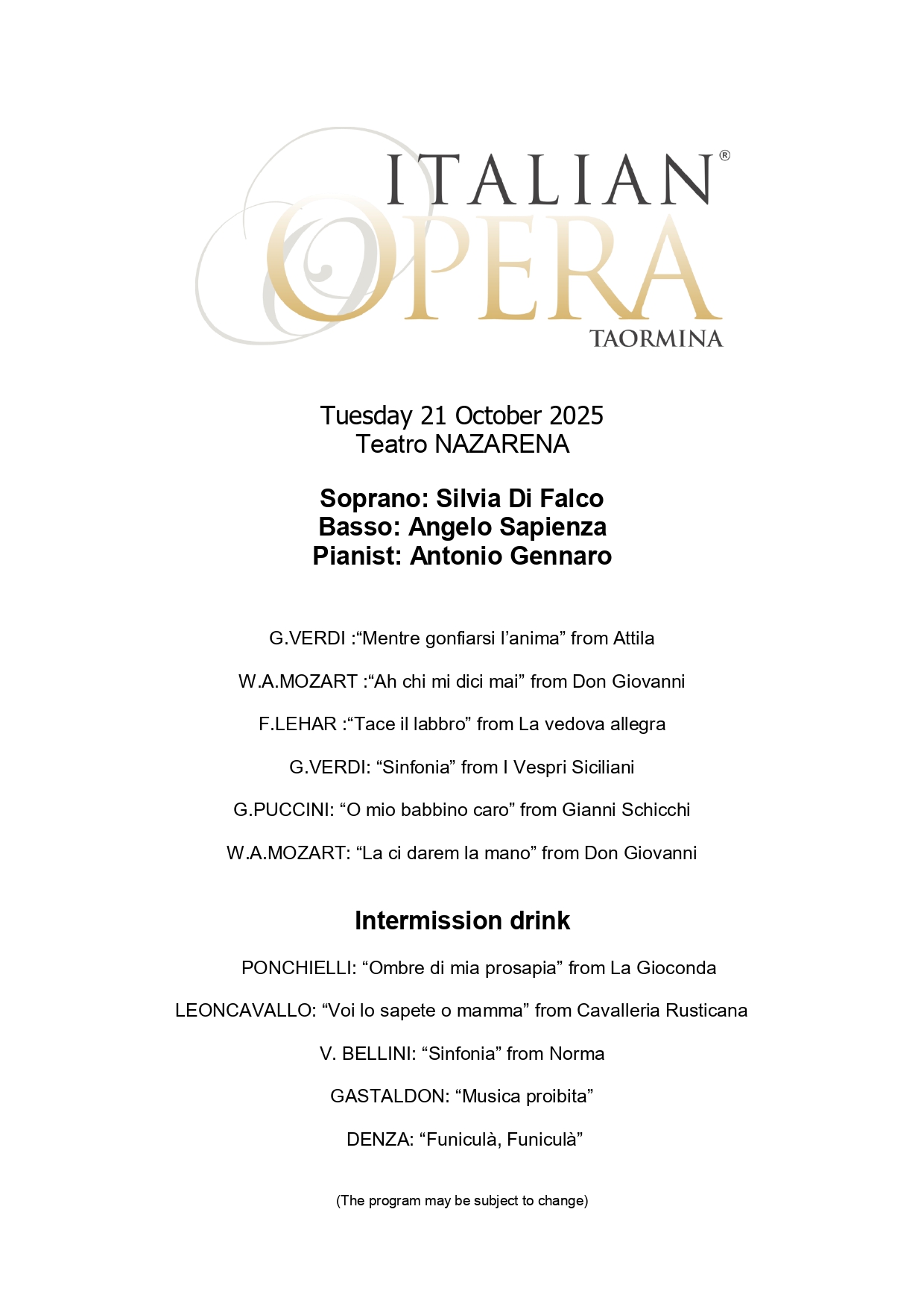 https://www.taormina.it/wp-content/uploads/2019/05/TAORMINA-2-Custom.png00taormina-friendshttps://www.taormina.it/wp-content/uploads/2019/05/TAORMINA-2-Custom.pngtaormina-friends2024-04-25 00:38:352025-04-01 19:04:06April 25, 2025 - Forza Venite Gente (the musical)