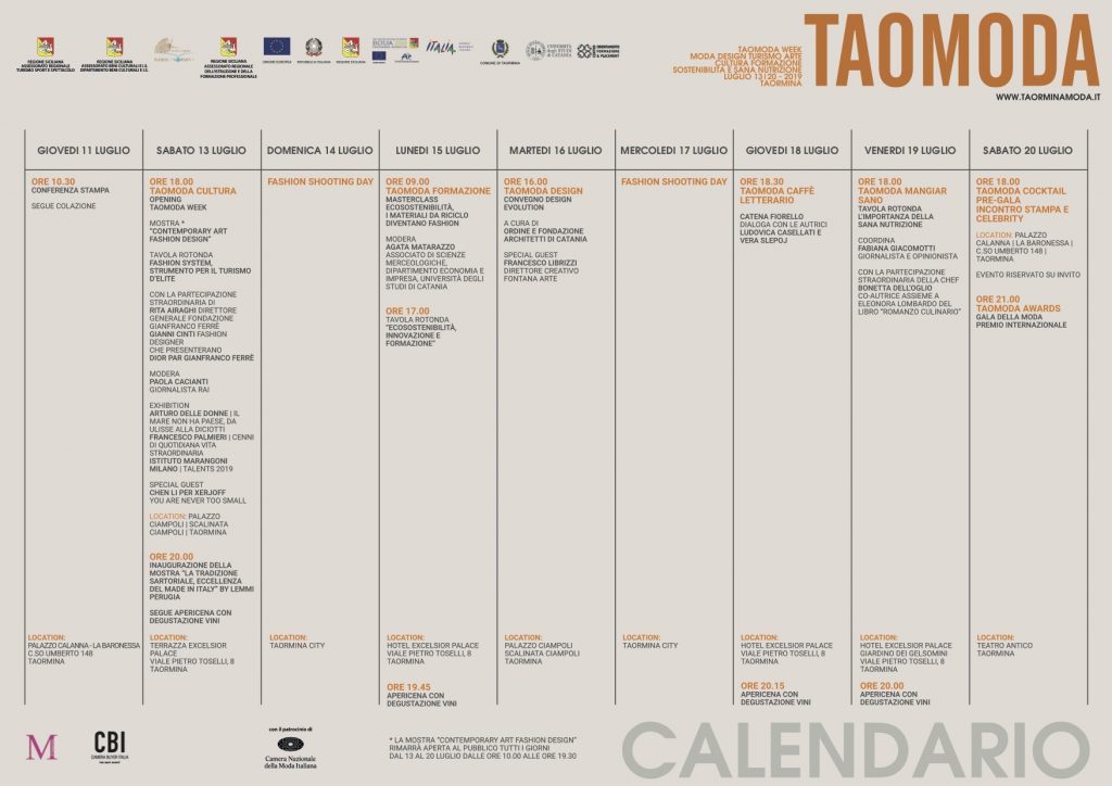 TAOMODA, scheduled in Taormina from 13 to 20 July, is one of the most important sector events in Italy and it combines fashion, design, art, culture and healthy nutrition.