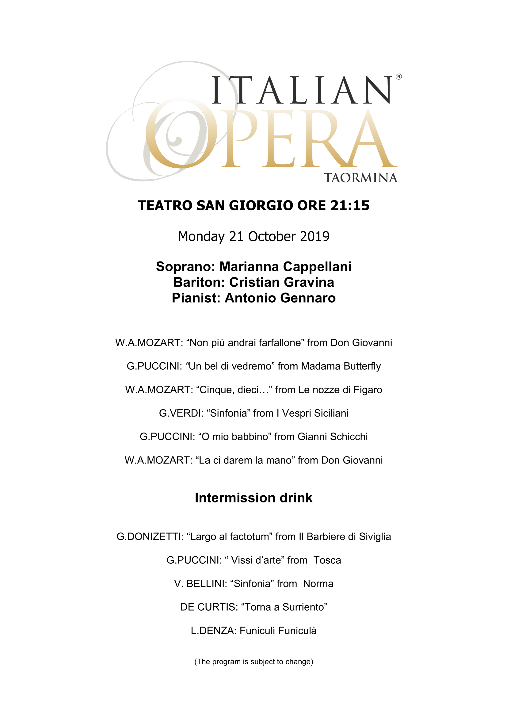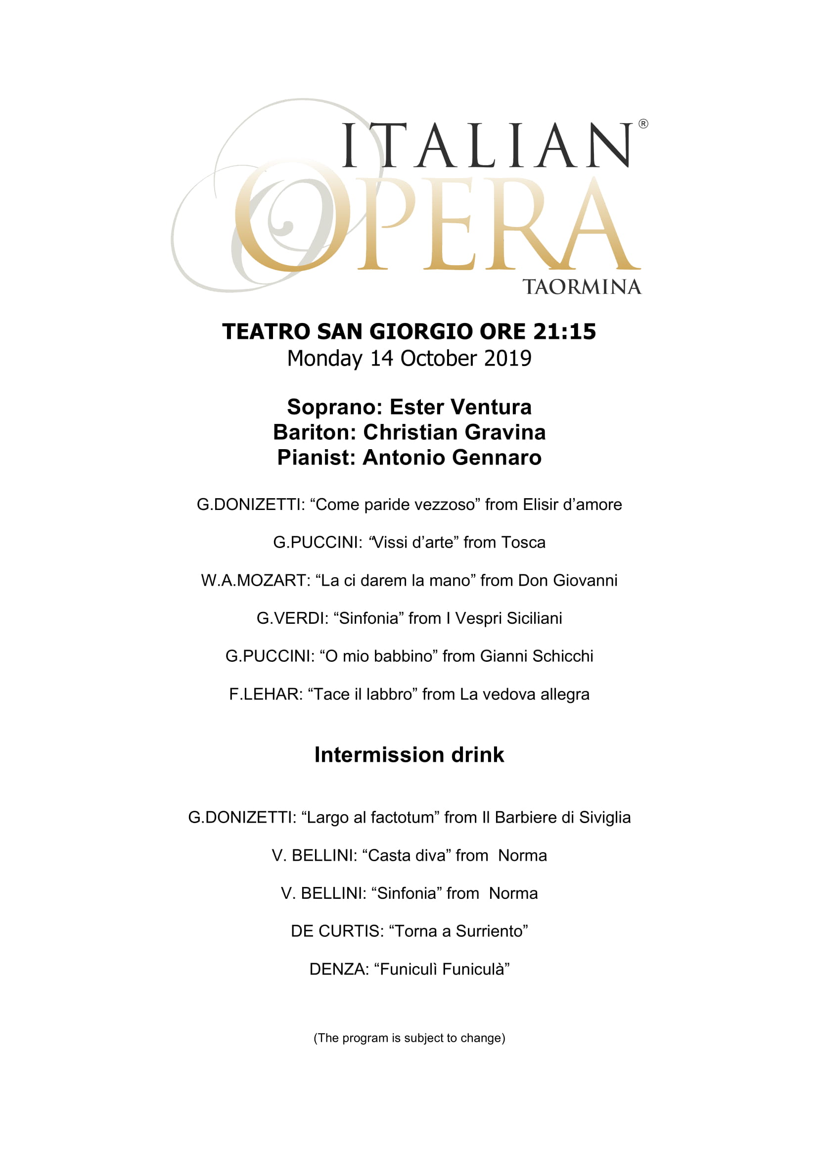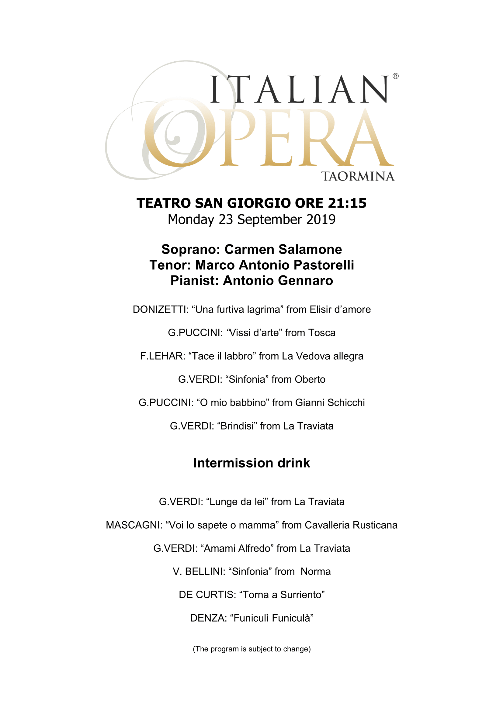For the films shot in Taormina on Saturday, November 2nd: “L’immagine meravigliosa” (1951) by Richard Brooks with Stewart Granger, Anna Maria Pierangeli and George Sanders to follow “Gitarren klingen leise durch die Nacht” (1959) by Hans Deppe with Fred Bertelmann, Margit Nunke and Live Bach.