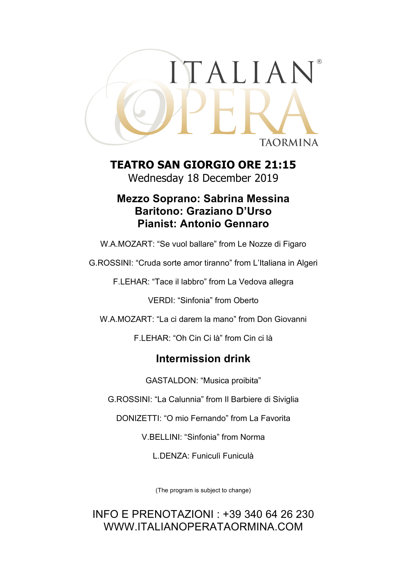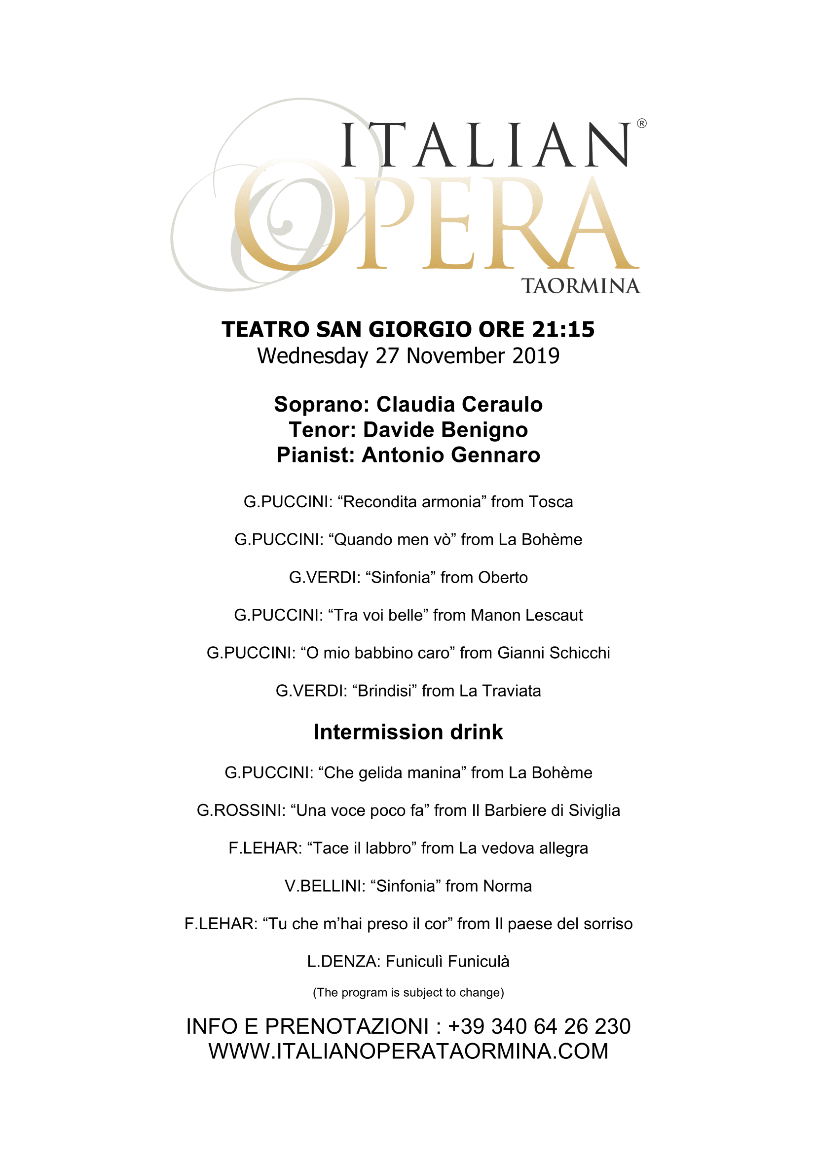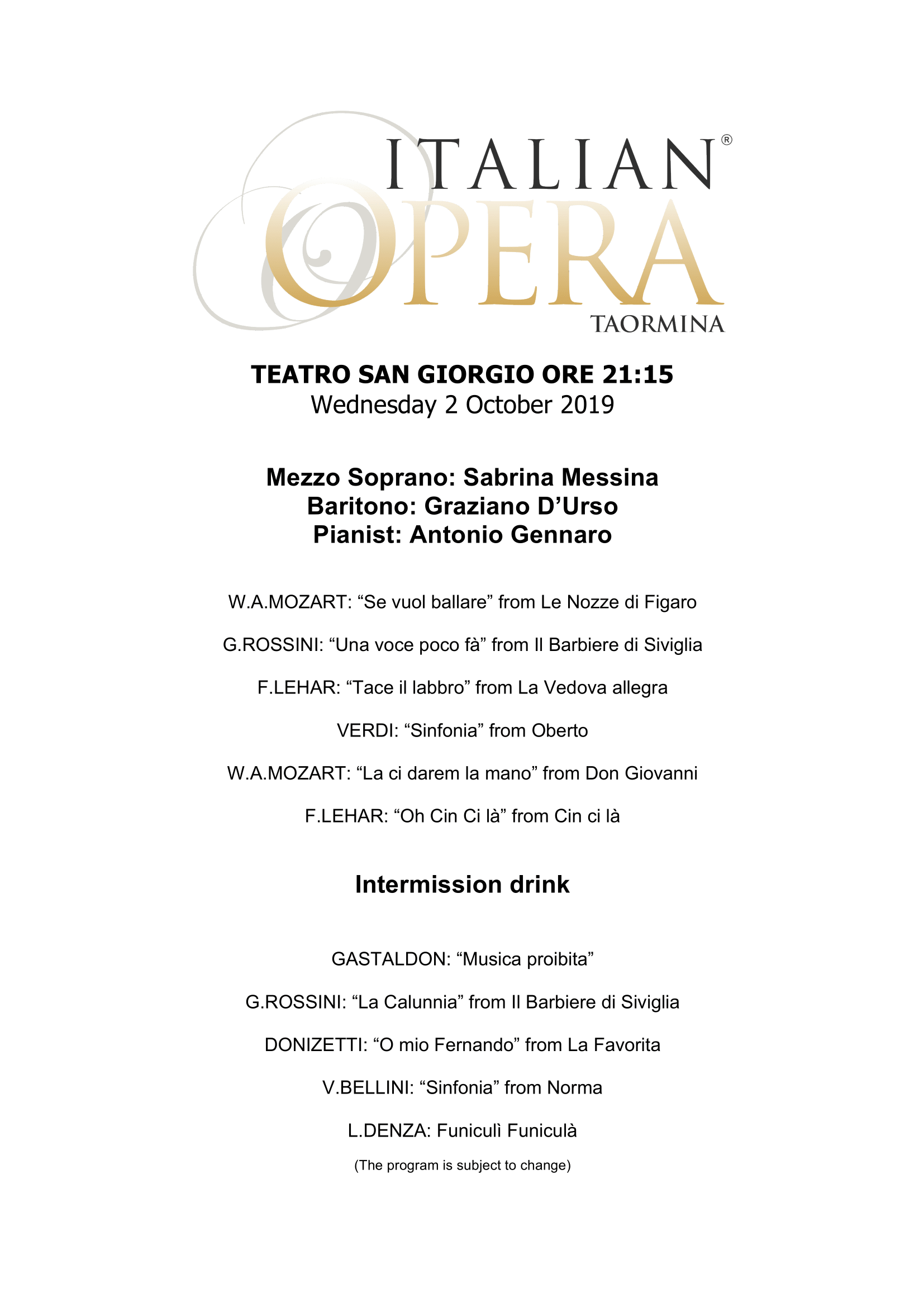 For the films shot in Taormina on Saturday, November 2nd: “L’immagine meravigliosa” (1951) by Richard Brooks with Stewart Granger, Anna Maria Pierangeli and George Sanders to follow “Gitarren klingen leise durch die Nacht” (1959) by Hans Deppe with Fred Bertelmann, Margit Nunke and Live Bach.