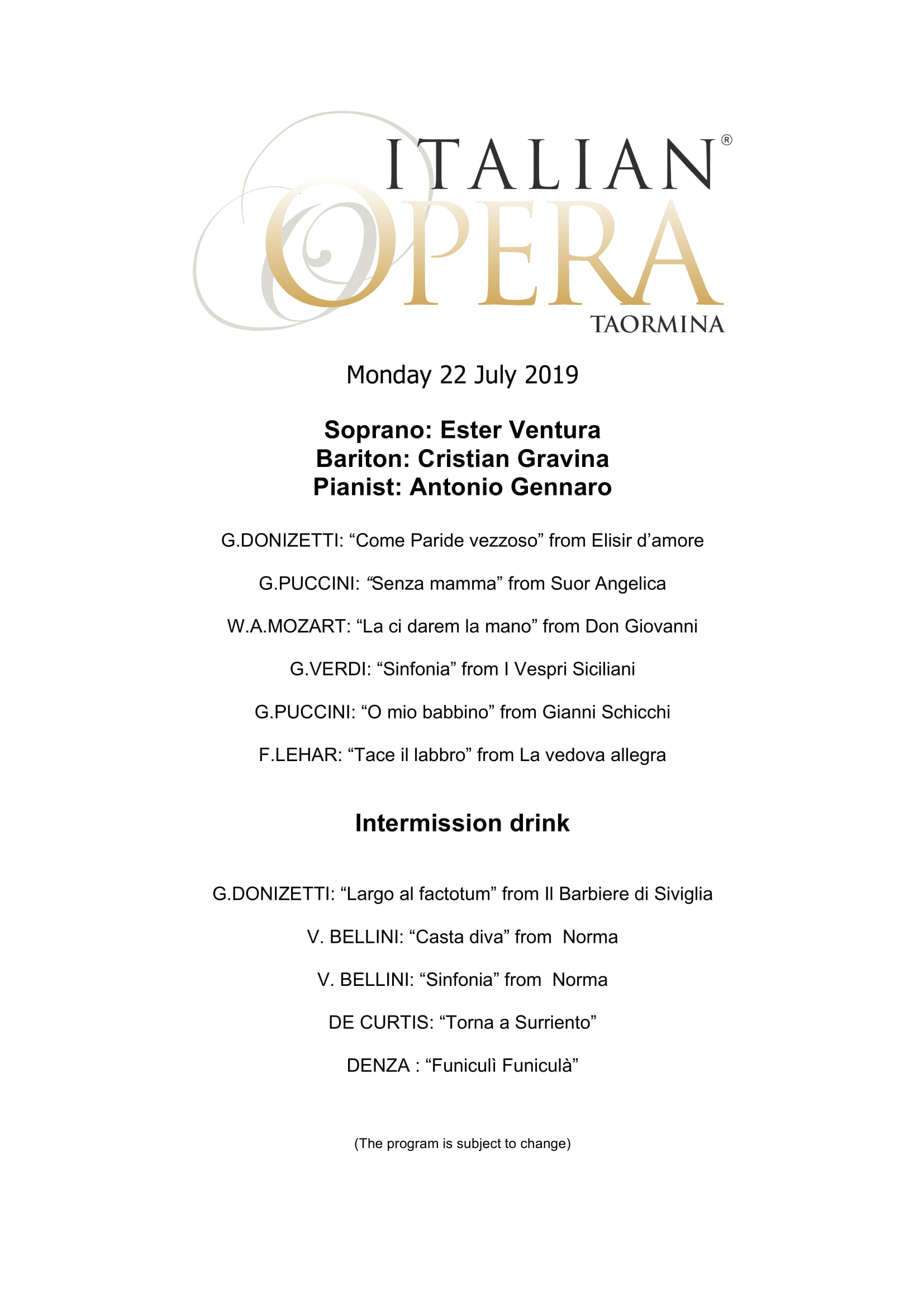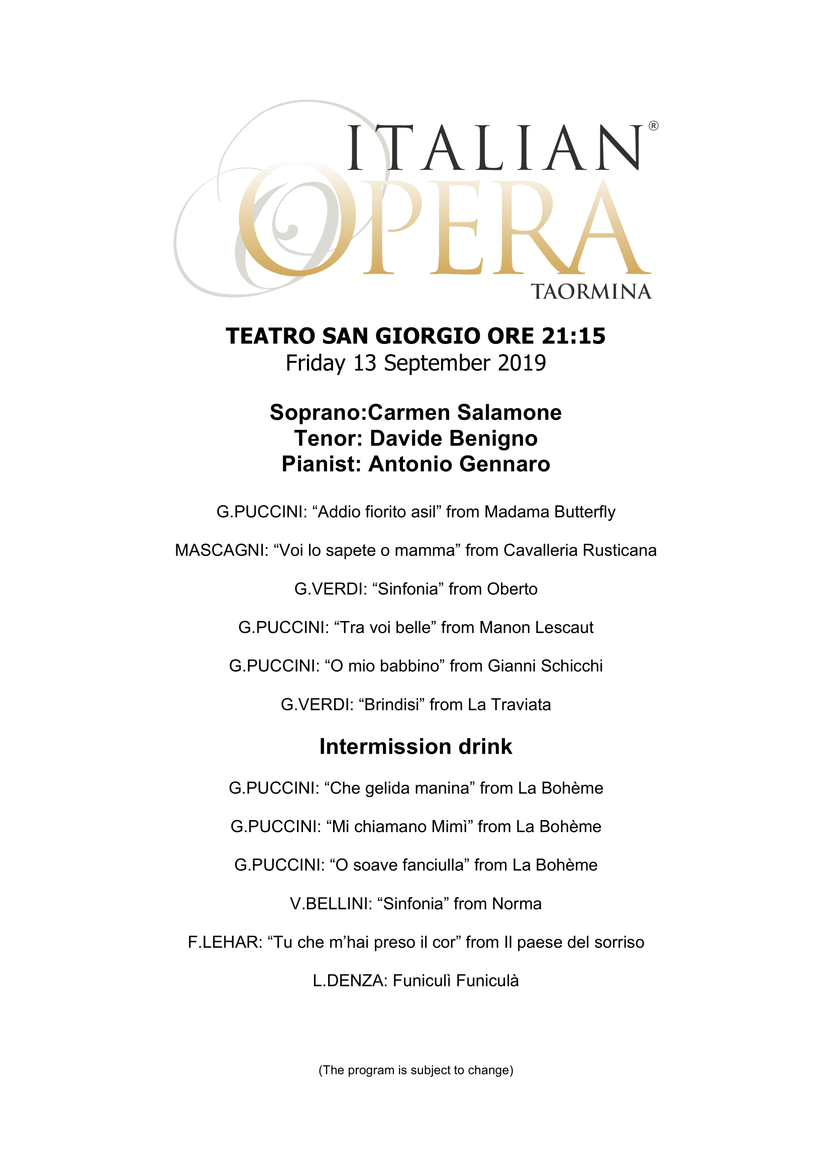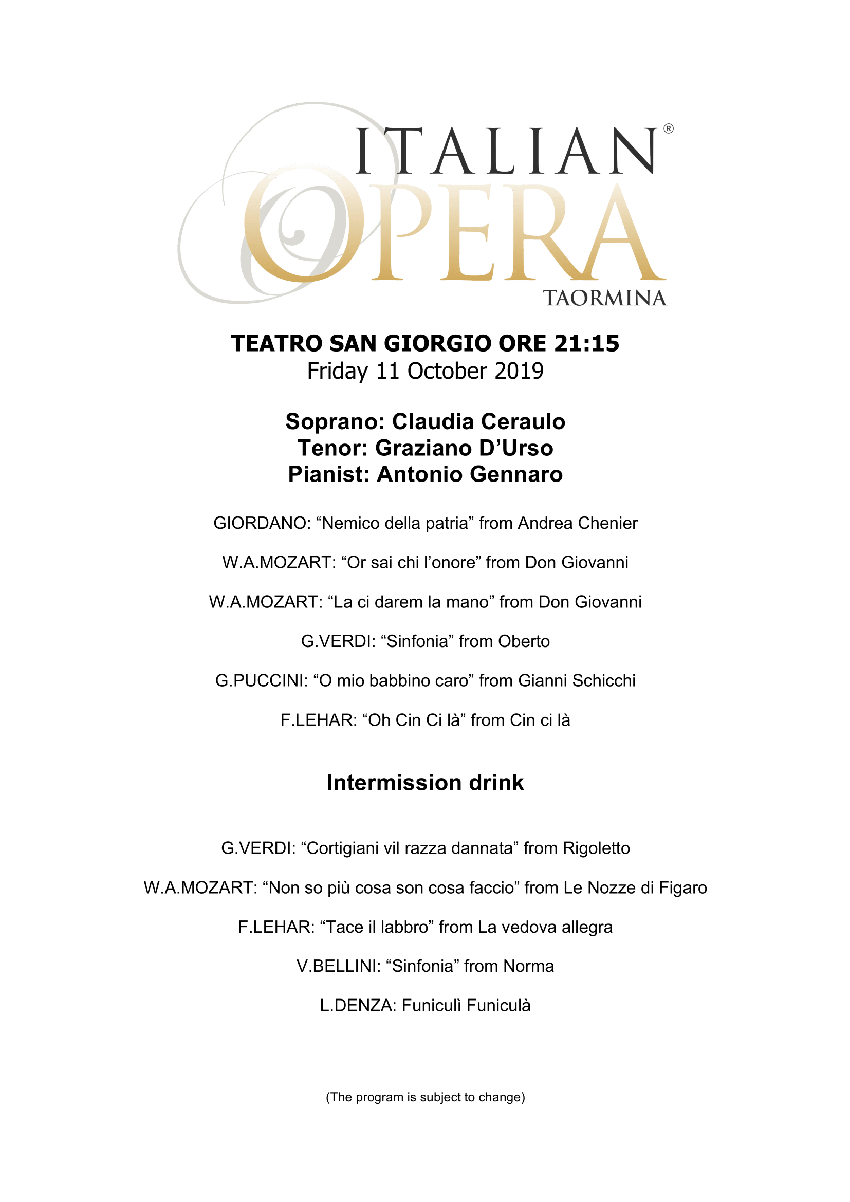 For the films shot in Taormina on Saturday, November 2nd: “L’immagine meravigliosa” (1951) by Richard Brooks with Stewart Granger, Anna Maria Pierangeli and George Sanders to follow “Gitarren klingen leise durch die Nacht” (1959) by Hans Deppe with Fred Bertelmann, Margit Nunke and Live Bach.